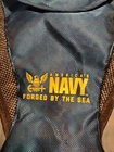This America's Navy Forged By The Sea Blue Grey Black Small Light Nylon Backpack is perfect for casual occasions and sports activities. The backpack features a solid and mesh pattern, with a blue color and USA/Navy theme.