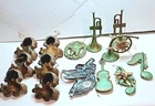Angel Cherubs Musical 14 Piece Christmas Ornaments Plastic Antique Green Gold Finish. Gently pre-loved great condition. The lot consists of 6 resin/plastic 4"-6" Cherubs, one 6" metal angel blowing trumpet (Taiwan), 4 musical plastic/resin 4-6" instruments, 2 musical plastic/resin 4" notes, and one 3.5" Santa. See photos.