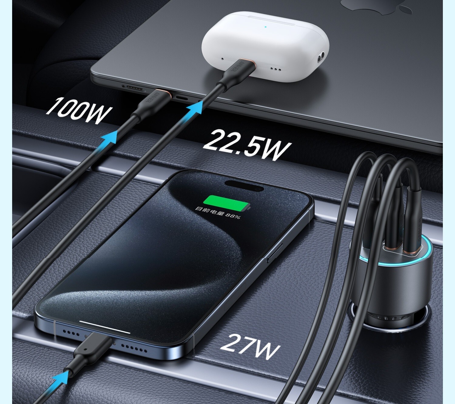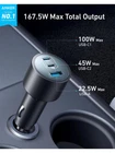 Anker 167.5W USB-C Car Charger | Ultra-Fast Triple-Port Charging Product Overview: Stay powered on the go with the Anker 167.5W USB-C Car Charger , a compact, high-performance charging solution designed for fast and simultaneous charging of multiple devices . Featuring GaN technology and triple-port power distribution , this charger efficiently delivers 100W, 45W, and 22.5W outputs —perfect for MacBooks, iPhones, iPads, Samsung devices, and more . Key Features: ✅ Triple-Port 167.5W Max Output – Seamlessly charge three devices at once : USB-C1: 100W – Fast charge a 16" MacBook Pro from 0-50% in just 47 minutes . USB-C2: 45W – Reliable and fast charging for iPhones, Samsung devices, and iPads . USB-A: 22.5W – Extra port for charging headphones, accessories, or secondary devices. ✅ Ultra-Fast USB-C Power Delivery – Supports PD 3.1 for lightning-fast charging speeds while maintaining safety and efficiency. ✅ Compact & Travel-Friendly Design – A sleek, black, ultra-compact charger that won't clutter your car's interior while offering maximum power . ✅ GaN (Gallium Nitride) Technology – More efficient, smaller, and powerful than traditional chargers, ensuring minimal heat generation and optimized performance. ✅ Universal Compatibility – Works with a wide range of devices , including: MacBook Pro 16-inch, MacBook Air, iPhone 15/14/13 Series iPad Pro 12.9-inch/11-inch (M2, 2021/2020) Samsung Galaxy S24/S23/S22 Series Headphones, laptops, and more ✅ Superior Safety Protection – Built-in MultiProtect technology with temperature control, short-circuit protection, and overcharge prevention for safe and reliable charging . Product Specifications: Brand: Anker Model: A2737 Color: Black Ports: 3 (2× USB-C + 1× USB-A) Output Power: USB-C1: 100W USB-C2: 45W USB-A: 22.5W Total Power Output: 167.5W Fast Charging Support: Yes (PD 3.1, Quick Charge) Input Voltage: 15V GaN Technology: Yes Size: Ultra-compact and travel-friendly Compatible Devices: MacBook Pro, iPhones, iPads, Samsung Galaxy, Laptops, Headphones, USB-C Devices What’s in the Box? 📦 Anker 167.5W USB-C Car Charger 📦 User Manual 📦 Customer Support & Warranty Guide Why Choose the Anker 167.5W USB-C Car Charger? If you need a powerful, compact, and reliable charger for your car, the Anker 167.5W USB-C Car Charger is a must-have . With fast-charging capabilities, triple-port versatility, and cutting-edge GaN technology , it ensures that your devices stay charged wherever you go. Order yours today and experience ultra-fast, hassle-free charging on the road! 🚗⚡🔋