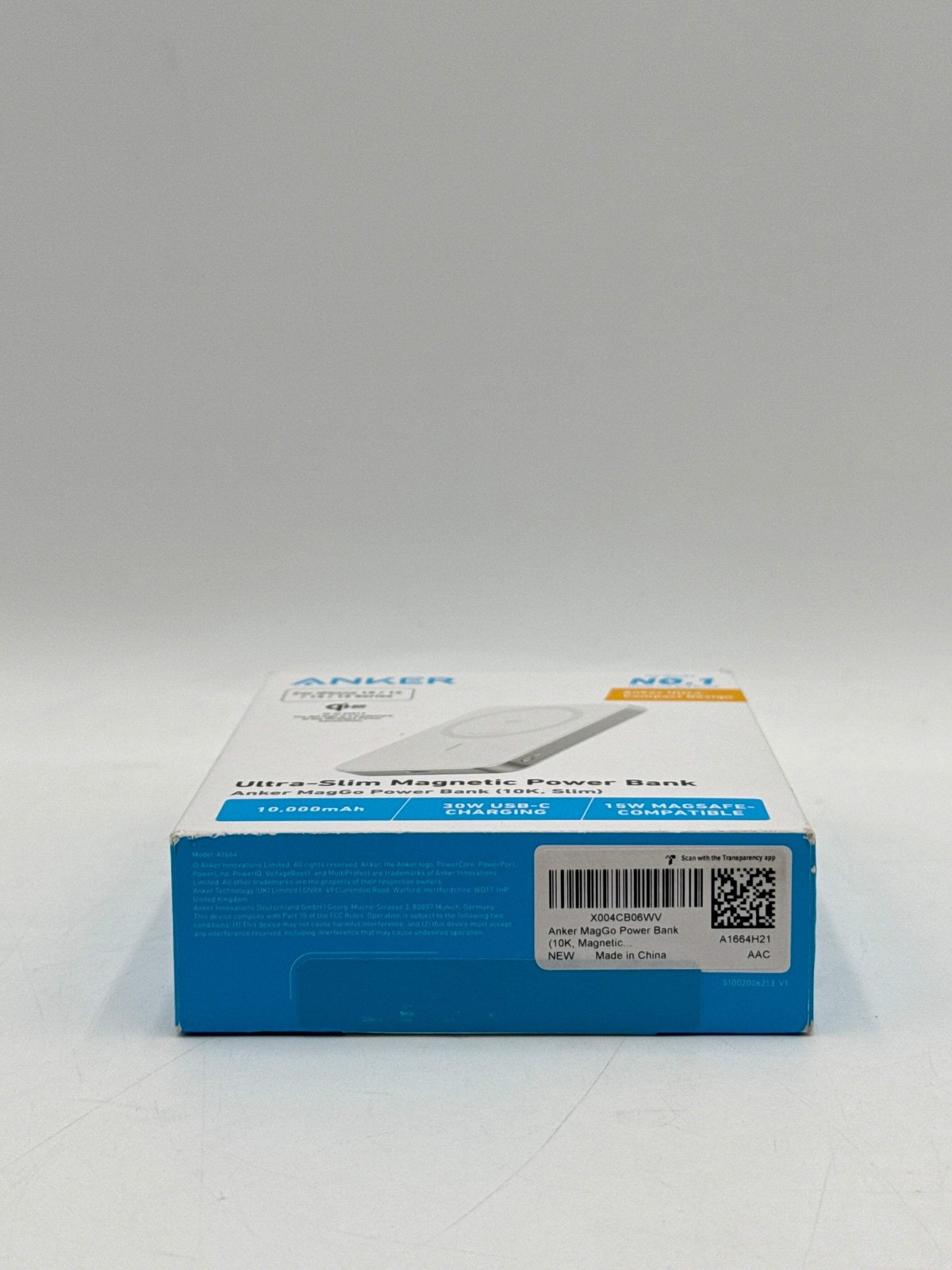 Anker MagGo Power Bank 10000mAh Slim Magnetic Battery 15W Qi2 MagSafe Charging Feature Description Brand Anker Model MagGo Power Bank Battery Capacity 10,000mAh Charging Technology 15W Qi2 Wireless Charging Compatibility MagSafe & Qi2-enabled devices Magnetic Attachment Strong, secure magnetic hold for seamless wireless charging Design Ultra-slim, lightweight, and pocket-friendly Input / Output Ports USB-C (2-way fast charging) Color White Use While Charging Pass-through charging supported Included in Box Anker MagGo 10K Power Bank, USB-C Cable, User Manual Condition Brand new in the box Shipping FREE Standard Shipping Returns 30-Day Returns Accepted (Buyer pays return shipping unless item is defective) Anker MagGo Power Bank 10000mAh Slim Magnetic Battery 15W Qi2 MagSafe Charging Feature Description Brand Anker Model MagGo Power Bank Battery Capacity 10,000mAh Charging Technology 15W Qi2 Wireless Charging Compatibility MagSafe & Qi2-enabled devices Magnetic Attachment Strong, secure magnetic hold for seamless wireless charging Design Ultra-slim, lightweight, and pocket-friendly Input / Output Ports USB-C (2-way fast charging) Color White Use While Charging Pass-through charging supported Included in Box Anker MagGo 10K Power Bank, USB-C Cable, User Manual Condition Brand new in the box Shipping FREE Standard Shipping Returns 30-Day Returns Accepted (Buyer pays return shipping unless item is defective) × × × × × × Buy now and save! Shipping info Click the Shipping & Payments tab above the listing description for more info FREE Shipping Click the Shipping & Payments tab above the listing description for more info! Additional delivery notes PICK UP OPTION Sorry, our items are NOT available for pick-up. PAYMENT Immediate payment is required upon selecting "Buy It Now" or upon checking out through the cart. We accept payment via U.S. PayPal accounts and all Major Credit Cards, Debit Cards & Google Pay. We are legally required to collect sales tax in those states and localities where we maintain a physical presence (nexus). The applicable amount of sales tax charged to an order will be calculated based on the shipment destination's state and local sales tax laws. Thank you for shopping with us on eBay! Additional Information No additional information at this time Ask seller a question You might also like Nikon COOLPIX L11 6.0 MP Digital Camera 3X Optical Zoom - Silver Asus K55N A8 Vision AMD Windows 7 Laptop Broken/ For Parts Toshiba M-769 VHS VCR Video Cassette Recorder – Untested - READ ASUS Chromebook CX22NA 11.6" Intel Celeron N3350 4GB DDR4 32GB eMMC - For parts Contact To contact our Customer Service Team, simply click the button here and our Customer Service team will be happy to assist. Ask seller a question © My Store Shipping & Payments Shipping is FREE for this item Payment Accepted Payment Methods Immediate payment is required upon selecting "Buy It Now" or upon checking out through the cart. We accept payment via U.S. PayPal accounts and all Major Credit Cards, Debit Cards & Google Pay. We are legally required to collect sales tax in those states and localities where we maintain a physical presence (nexus). The applicable amount of sales tax charged to an order will be calculated based on the shipment destination's state and local sales tax laws. Thank you for shopping with us on eBay! Returns Returns are accepted Items must be returned within 30 days of the auction ending Seller will pay for return shipping. eBay integration by