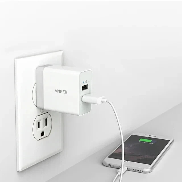 Anker White 24W 2-Port USB-C Power Fast Compact Foldable Plug Wall Charger Description The Anker White 24W 2-Port USB-C Power Fast Compact Foldable Plug Wall Charger is a sleek and compact charger designed for cellphones and other devices. With a universal compatibility, this wall charger features two USB-C ports for fast and efficient charging. The lightweight and foldable design makes it easy to carry and use anywhere. Made of durable plastic, this charger is both practical and stylish, perfect for those in need of a reliable power source on the go.. Please message me if you have any questions. The Anker White 24W 2-Port USB-C Power Fast Compact Foldable Plug Wall Charger is a sleek and compact charger designed for cellphones and other devices. With a universal compatibility, this wall charger features two USB-C ports for fast and efficient charging. The lightweight and foldable design makes it easy to carry and use anywhere. Made of durable plastic, this charger is both practical and stylish, perfect for those in need of a reliable power source on the go.