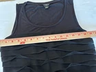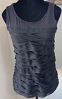 Introducing a stylish and versatile Ann Taylor Ruffled Black Tank Sleeveless Blouse! This top is perfect for any occasion, whether it be for travel, casual wear, or business attire. It features a round neckline, pullover closure, and a flattering ruffled accent to add a touch of femininity. Made with a blend of polyester, spandex, and modal, this blouse is comfortable and form-fitting for a flattering silhouette. The sleeveless design makes it perfect for warm weather, while the black color adds a touch of sophistication. This blouse is available in size small and is suitable for petite women.