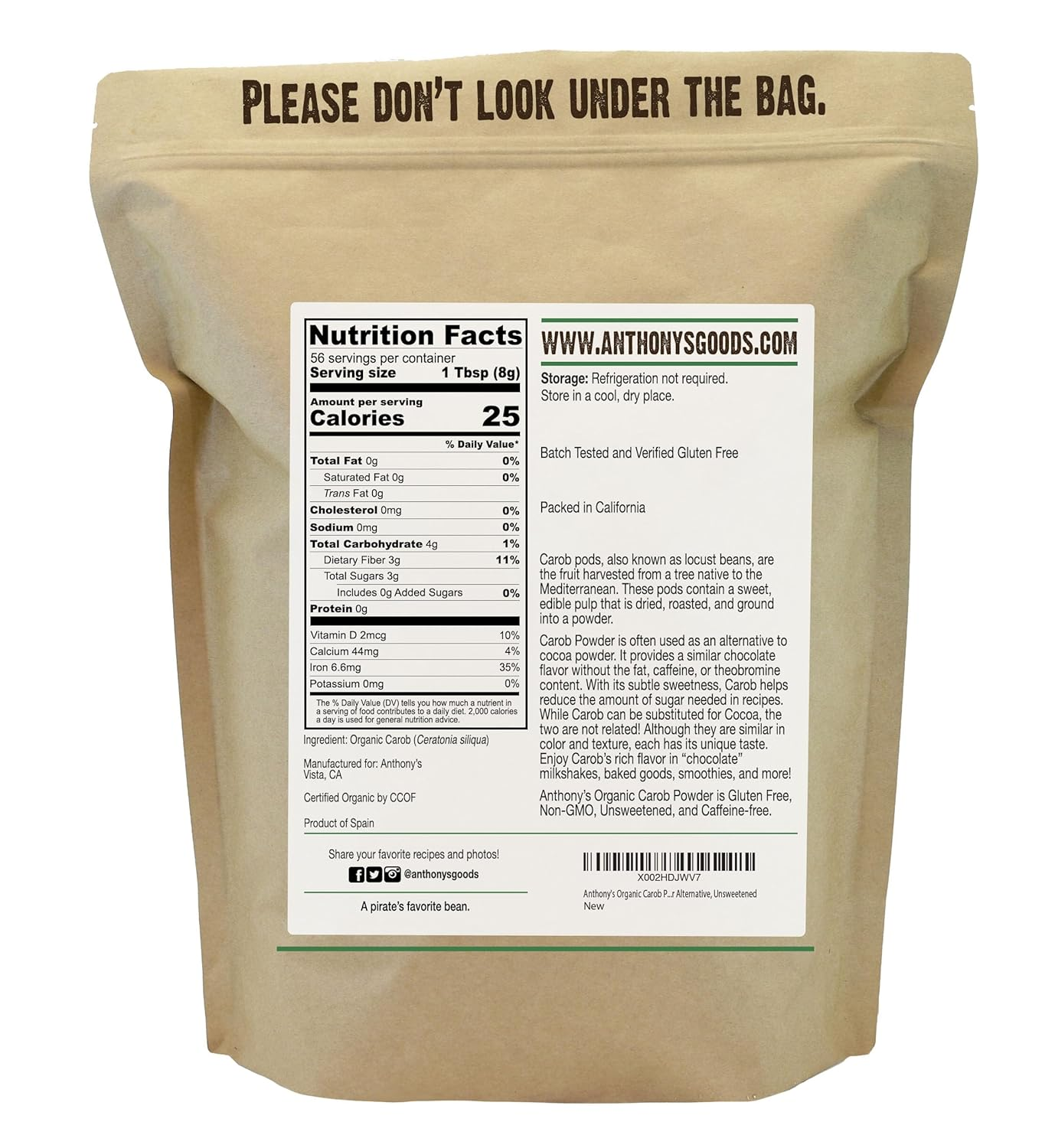 Store New Arrivals Add to Favorite View Feedback Contact Anthony'S Organic Carob Powder, 1 Lb, Gluten Free, Non GMO, Cocoa Powder Alternative, Unsweetened Description Units 16.0 Ounce Manufacturer Anthony's Is Discontinued By Manufacturer No Package Dimensions 9.25 x 7.01 x 3.35 inches; 1 Pounds Size 1 Pound (Pack of 1) USDA Certified Organic Carob Powder Batch Tested and Verified Gluten Free Lightly roasted to enhance its sweet "chocolate" flavor Carob’s rich flavor can be enjoyed in “chocolate”, milkshakes, baked goods, smoothies & more! Organic, Gluten Free, Non-GMO, Non-Irradiated, Unsweetened and Caffeine Free Caffeine Free Cocoa Powder Alternative Product Description About our Organic Carob Powder Carob pods, also known as locust bean, are the fruit harvested from a tree native to the Mediterranean. These pods contain a sweet edible pulp that is dried, roasted and ground into a powder. Carob Powder is often used as a cocoa powder alternative, but without the caffeine or theobromine content. With a natural sweetness, carob helps reduce the amount of sugar needed in recipes. While Carob might be substituted for Cocoa, the two are not even related! Although they are similar in color and texture, each has their own unique taste. Carob’s rich flavor can be enjoyed in “chocolate”, milkshakes, baked goods, smoothies & more! Anthony’s Organic Carob Powder is Gluten Free, Non-GMO, Unsweetened and Caffeine free. Enjoy Carob's rich flavor in "chocolate" milkshakes, baked goods, smoothies and more! Gluten-Free Non-GMO, Non-Irradiated Caffeine-Free Cocoa Powder Alternative Vegan Friendly Unsweetened ABOUT US We offer the best prices around on high quality products. Our E-store includes media such as books, movies, music and games while offering electronics, toys, sporting apparel, clothing, tools, general home, garden items and more. SHIPPING We are always working hard to ensure your package arrives as soon as possible. Please understand that some factors like weather, high postal traffic, and the performance of shipping companies are outside of our control. We offer free shipping to the lower 48 states and ship within 2 business days of payment, usually sooner. We do not accept P.O. Boxes. Please provide a physical address. RETURNS We offer a 30-Day Return Policy on items which you are not completely satisfied with. You have the option for a full-refund or an exchange of the item. No returns are available on items shipped outside of the USA. PAYMENT We accept PayPal. CONTACT US This page content is yet to come Please ad us to your favorite seller and visit again later Thank You CUSTOMER SATISFACTION We try our very best to make sure every customer is completely satisfied. If there's a problem, message us! We're happy to help.