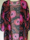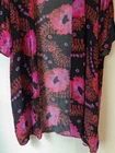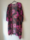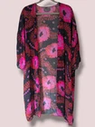 Anthropologie Colorful Vibrant Vivid Bold Floral Open Front Breezy Kimono Cover-Up Layering. Great pre-owned condition - no notable flaws. One size. Lightweight. Airy and comfortable. Slight stretch. 100% viscose. Pink and orange color way. Length: 42" Pit to pit: 27"