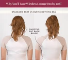 Fabrication: four-way stretch fabric Features: moisture-wicking, wireless design, smoothing back coverage, Content: front/back 75% nylon/25% spandex; front lining 82% nylon/18% spandex Care: machine wash, dry flat A470673