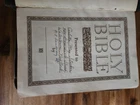 Antique 1913 Holy Bible Red Letter KJV Genuine Leather Printed In USA Overall good condition considering age. Bible is signed and there is writing in the margins. Taped items on some pages. Top of leather cover is worn. Please review photos in detail and reach out with any questions. Sold As Is Thank you for looking!!