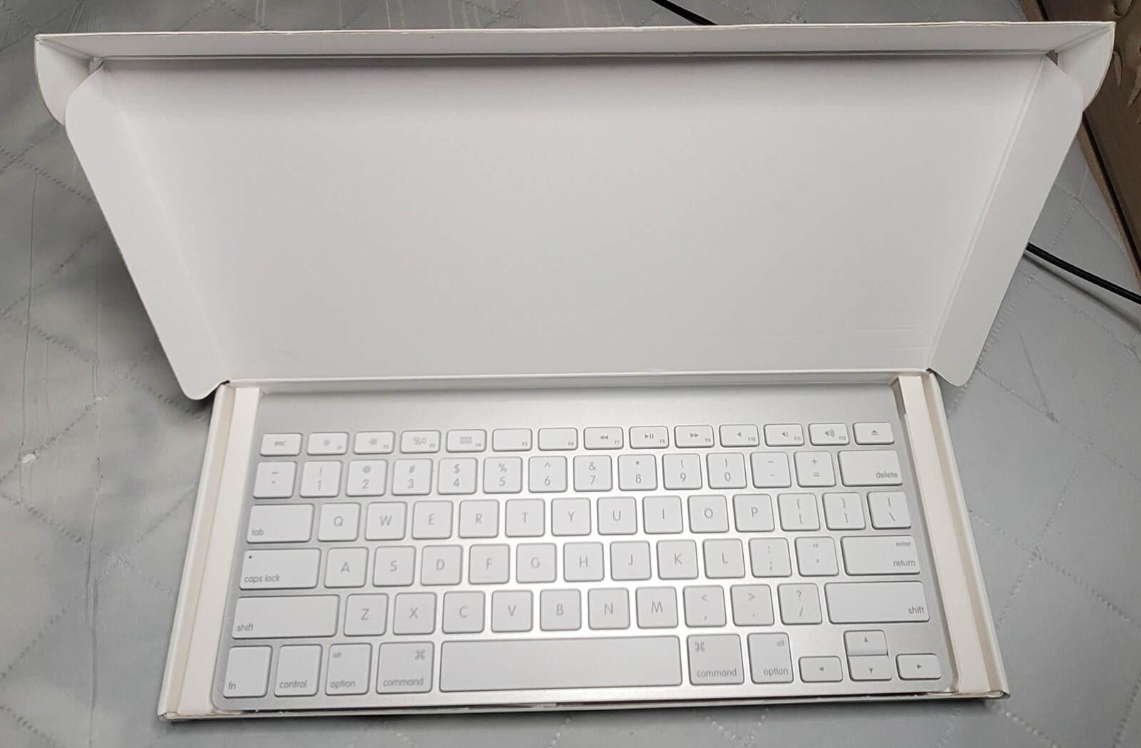 USED LIKE NEW CONDITION Enhance your typing experience with this Apple Wireless Bluetooth Keyboard A1314 MC184LL/B. This keyboard is perfect for those who value portability and convenience as it is slim and wireless. It has a Bluetooth connectivity feature that allows you to connect it to your device without the need for cables. The keyboard has a QWERTY (Standard) layout and is designed with a sleek white color that complements any setup. It also features an English keyboard language and has a unit quantity of one. This Apple keyboard is a great addition to your computer, tablet or any device that supports Bluetooth connectivity.