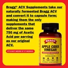 BRAGG ACV CAPSULES: Dietary supplement made with 1877mg of our proprietary ACV blend and 750mg of acetic acid per serving, plus vitamin D and zinc for immunity IMMUNE SYSTEM SUPPORT: Vitamin D and Zinc are nutrients that support the immune system DAILY DOSE OF WELLNESS: To easily incorporate ACV into your diet, adults take 3 capsules daily with meals and plenty of water COMPARE TO ACV GUMMIES: Acetic acid content in 3 Bragg ACV capsules is the same as 30 ACV gummies**; No sugar added, in contrast to most ACV gummies** **commercially available ACV gummies THOUGHTFUL INGREDIENTS: No artificial colors or flavors added; Non-GMO Project Verified, Kosher, Vegan, and Gluten-Free Product Description The video showcases the product in use. The video guides you through product setup. The video compares multiple products. The video shows the product being unpacked. * These statements have not been evaluated by the Food and Drug Administration. This product is not intended to diagnose, treat, cure, or prevent any disease Key Ingredients ACV Powder Blend 1877 mg We start with Bragg organic liquid apple cider vinegar to make the ACV powder in our supplements. Acetic Acid 750 mg “The Good Stuff”: An organic acid naturally produced when fermenting ACV Aids healthy weight and cholesterol levels. Vitamin D 30 mcg An essential nutrient that helps support a healthy immune system and aids in the absorption of calcium Zinc 13 mg An essential mineral that helps support a healthy immune system Our bodies don’t produce Zinc naturally, so we have to get it from food or supplements What is acetic acid ("The Good Stuff") and why do I need 750 mg per day? Acetic acid is what we call “the good stuff”. It’s an organic acid created during the fermentation process that makes apple cider vinegar. One tablespoon of apple cider vinegar contains approximately 750 mg of acetic acid. How soon will I see results? Due to differences in people’s metabolism, health and age, everyone’s experience may vary. In the clinical studies we have on file, some benefits like feeling full and preventing blood sugar spikes were seen within 30 minutes of taking the product. Can I take Bragg ACV capsules with other Bragg apple cider vinegar products or supplements? Yes, we recommend taking 750mg to 1500mg of acetic acid daily in any combination of Bragg ACV products (for example, 3 ACV capsules + 1 tablespoon of liquid ACV), up to 2400mg of acetic acid per day based on the scientific literature. When should I take Bragg ACV capsules? Bragg ACV capsules can be taken at any time of day, along with food and water. **Kondo T, et al. Biotechnol Biochem 2009;73:1837-43 . Add to Cart Add to Cart Add to Cart Add to Cart Add to Cart Customer Reviews 4.5 out of 5 stars 18,575 4.4 out of 5 stars 520 4.4 out of 5 stars 4,041 4.5 out of 5 stars 329 4.3 out of 5 stars 220 4.6 out of 5 stars 276 4.4 out of 5 stars 318 Price $13.50 $ 13 . 50 $19.99 $ 19 . 99 $16.99 $ 16 . 99 $20.99 $ 20 . 99 — — $22.99 $ 22 . 99 Vegan ✔ ✔ ✔ ✔ ✔ ✔ ✔ Non-GMO ✔ ✔ ✔ ✔ ✔ ✔ ✔ Kosher (KSA) ✔ ✔ ✔ ✔ ✔ ✔ ✔ Gluten-Free ✔ ✔ ✔ ✔ ✔ ✔ ✔ Sugar-Free ✔ ✔ ✔ ✔ ✔ ✔ ✔ Calorie-Free ✔ ✔ ✔ ✔ ✔ ✔ ✘ No Artificial Colors or Flavor ✔ ✔ ✔ ✔ ✔ ✔ ✔ 750 MG Acetic Acid Per Serving ✔ ✔ ✔ ✔ ✘ ✘ ✘ Made with Bragg Organic ACV ✔ ✔ ✔ ✔ ✘ ✘ ✘ Efficacious Dose ✔ ✔ ✔ ✔ ✔ ✔ ✔ Helps Maintain Immunity, Weight & Cholesterol Stress, Weight & Cholesterol Energy, Weight & Cholesterol Beauty, Weight & Cholesterol Daily Wellness Joint Function & Inflammation Heart, Brain and Eye Function EXP 07/2027