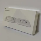Retail $129 The MagSafe Duo Charger conveniently charges your compatible iPhone, Apple Watch, Wireless Charging Case for AirPods, and other Qi-certified devices. Just place your devices on the charger and a steady, efficient charge begins on contact. The charger folds together neatly so you can easily take it with you wherever you go. MagSafe Duo Charger can be used to wirelessly charge your iPhone 8 or later, Apple Watch, AirPods models with a wireless charging, as you would with any Qi-certified charger Recommended: 20W USB-C Power Adapter (sold separately) What's in the Box: MagSafe Duo Charger USB-C to Lightning Cable (1 m)