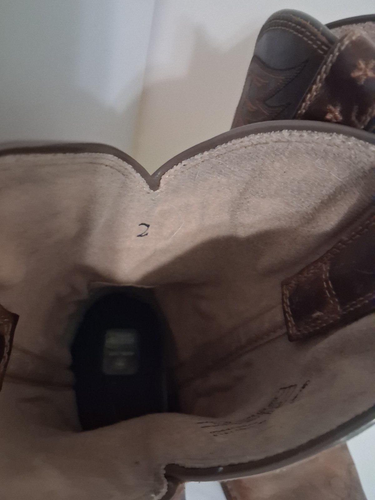 These Ariat Brown Leather Cowboy Boots in youth size 2 feature a square toe design and a comfortable low heel for everyday wear. Made with blended fabric lining and a rubber outsole, these boots have a pull-on closure and standard shoe width. The stylish Western design with boot pulls accents and a mid-calf shaft make them suitable for casual occasions in the summer, fall, and spring seasons. With a durable leather upper and foam insole, these cowboy boots are perfect for young adventurers looking to add a touch of Western flair to their wardrobe.