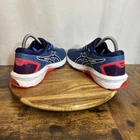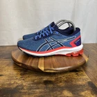 These are Asics GT-1000 running shoes in blue coral for women, size 7.5 (US) or 5.5 (UK). They are lace-up sneakers with a low-top shoe shaft style and a breathable mesh upper. The shoes feature cushioning, comfort, and performance for activities like walking, running, and training. The outsole is made of rubber for durability, and the design includes the Asics logo. Perfect for casual, work, or activewear in all seasons.