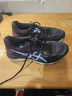 The Asics GT-2000 7 Women's Shoes are size 8.5 in a stylish black and purple color combination. These athletic sneakers feature a lace-up closure and low-top shoe shaft style, designed with mesh fabric for breathability. With arch support, cushioning, and a comfortable fit, they are suitable for various activities like running, jogging, hiking, and gym training. The rubber outsole provides durability, making them ideal for outdoor and indoor workouts. Perfect for both casual wear and active pursuits, these Asics sneakers blend performance and style seamlessly.