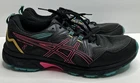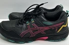 I’m a size 10.5. I do not like the fit. I do not have the box. Listed as preowned because of that Zero issues. Worn only to try on. The Asics Women's Gel Venture 8 Trail Running Shoes in a vibrant Black Pink color combination feature a low-top sneaker style with synthetic upper material and a lace-up closure. Designed for trail running performance, they include a Gel insole for comfort and support. With a UK size of 8.5 and US size of 10.5, these Asics shoes are suitable for casual, activewear, or workwear occasions. The model number is 1012A708 and they are part of the ASICS GEL-Venture 8 product line, showcasing a colorful and athletic theme perfect for outdoor activities.