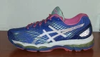 Experience the perfect blend of comfort and performance with these ASICS GEL-Nimbus 17 sneakers. Designed for women who love to run, these shoes come in a vibrant blue and pink color, making them perfect for adding a pop of color to your activewear. The lace-up closure ensures a secure fit, while the cushioned insole and lightweight design provide ultimate comfort during high-intensity workouts. These sneakers are perfect for a variety of occasions, including gym and training sessions, walking, school, cross training, CrossFit, and running and jogging. The breathable and synthetic lining material ensure your feet stay cool and comfortable, while the rubber outsole provides superior traction on any surface. With the ASICS GEL-Nimbus 17, you'll have a stylish and functional shoe that will help you reach your fitness goals in no time!