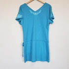 Athleta Embroidered Blue Taj Tunic Dress Women's Small Casual Versatile piece it can be a swim coverup, sporty mini dress or a tunic. - Scoop neck, v-neck in back - Drawstring waist - 60% cotton/ 40% modal - Blue embroidery on front & back of neck, as well as both sleeves 738826 Size S Small Approximate Measurements: pit to pit - 18" length - 31" Excellent pre-owned condition, no rips, tears or stains. Smoke free, dog friendly home. casual weekend day off spring summer dopamine athleisure