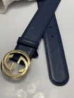 Thank you for your visiting our page! Condition Description GUCCI Navy Leather Belt Interlocking G Buckle Italy Women's Auth From Japan Size Width: 3.5 cm ≈ 1.38 in Total length: 92.5 cm ≈ 36.42 in Condition A product that has been used and has some damage Color Navy Material Leather Please Note shipping from Japan. Policy Payment You can use various payment methods based on eBay Managed Payments. Import duties, taxes and charges are not included in the item price or shipping charges. These charges are the buyer's responsibility. Cancellations & Returns Cancellation or returns will be accepted only if the item has an obvious problem that was not mentioned in the listing description. If that, please let us know within 3 days you got the item. Buyer is responsible for shipping costs and any charge incurred shipping products back. International Buyers Import duties, taxes and charges are not included in the item price or shipping charges. These charges are the buyer's responsibility. Please check with your country's customs office to determine what these additional costs will be prior to bidding/buying. These charges are normally collected by the delivering freight (shipping) company or when you pick the item up - do not confuse them for additional shipping charges.