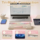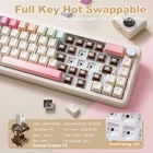 Tri-Mode Connectivity with 5000 mAh Battery:The B68 is designed for versatility as a wireless mechanical keyboard, offering Bluetooth, 2.4G wireless, and wired options. Compatible with both Windows and MacOS, this wireless keyboard easily connects to up to five devices. The large 5000mAh battery ensures extended use, making this cute wireless keyboard ideal for productivity and gaming, whether you’re at home or on the move. Hot Swappable Keyboard with Linear Switches:B68 keyboard is featuring full-key hot swap sockets that support 3-pin and 5-pin switches. This bubble keyboard comes with pre-lubricated linear switches, ensuring a smooth and silky typing experience. The switches are not only durable but also built to last, offering an extended lifespan. Additionally, the hot-swappable design allows you to easily replace switches without soldering, providing endless possibilities for DIY enthusiasts. Gasket Mount Design with Five-Layer Padding:Experience a quieter and smoother typing experience with the B68 creamy keyboard's precision gasket mount structure, featuring five layers of sound-absorbing padding. The inclusion of PE sandwich foam, IXPE switch pad, PET sound foam, switch foam, and a silicone button pad ensures reduced noise and vibration. Paired with pre-lubricated mechanical switches, this creamy sounding keyboard offers a soft and fluid typing feel, great for those who appreciate an ASMR keyboard experience. RGB Backlighting & Rainbow PBT Keycaps:Brighten up your workspace with the B68’s colorful RGB backlighting and south-facing LEDs. This rainbow keyboard also includes durable double-shot PBT keycaps, along with additional gradient rainbow keycaps, allowing you to personalize your setup to match your aesthetic keyboard style. Beyond the built-in lighting presets, you can further customize the keyboard's functions and RGB settings through the software, giving you complete control over this custom keyboard. 65% Compact Layout with Multifunction Knob:The B68 mechanical keyboard features a 65% compact layout with a versatile multifunction knob, maximizing your aesthetic desk space while retaining all essential keys. With a simple long-press, effortlessly switch between multimedia and RGB modes to suit your work or gaming needs. The knob also allows you to easily adjust volume and RGB backlighting, making this cute keyboard the perfect blend of practicality and style for both desk setups and on-the-go use.