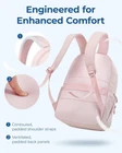 BAGSMART College Laptop Backpack, Travel Backpack for Women, Pink Product Details STYLE MEETS FUNCTIONALITY: Our women's backpack combines style and practicality, you don't have to compromise on fashion for functionality which allows you to showcase your unique style while comfortably carrying all your essentials AMPLE COMPARTMENTS: Stay organized and prepared with the BAGSMART Laptop backpack. With its thoughtfully designed compartments, you can easily separate and store your 15.6" laptop, books, supplies, and more. No more searching for items in a cluttered bag - everything has its place. Dimensions:17.3×11.8×7.9 inches ENHANCED COMFORT: The padded straps ensure an even distribution of weight, while the breathable mesh on the backside keeps you cool and provides ergonomic support for your back. Even when filled with heavy books and supplies, you can enjoy a comfortable carrying experience VERSATILE ALL-IN-ONE BACKPACK: TSA Friendly, the strap on backside allows easy slides over suitcase handle, whether you're going on summer holiday, weekend getaways, family trip, hiking, camping, or any other outdoor activity, our travel backpack is a reliable companion, a real travel essentials you must have