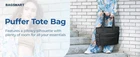 Puffer Tote Bag Compact Size: Size: 19.3'' x 6.3'x 13.8'', Capacity 20L. The quilted tote bag suitable daily necessities such as 15.6'' laptops, Umbrella, water cup, power banks, clothes, shoes, etc. The zipper closure design ensures the safety. Multi-pocket: The women tote bag feasures many separate pockets. 1 multiple layer main compartment can easily hold 15.6'' laptop computer, A4 folder, clothes, etc. 2 side widen pocket + 1 front pocket allow you quick access the items you need. Ultra Lightweight Material : Weighs only 0.99 pounds. Made of durable, soft and light taslan fabric. The puffer tote bag is easy to carry. Good choice of travel bag.