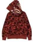 This BAPE Color Camo Double Shark Full Zip Hoodie in 'Red' is a designer streetwear piece for men. Made with high-quality cotton fleece material, it features a full zip closure, hooded design, and pockets for convenience. The hoodie is accented with a zipper, embroidered logo, and is a part of the Bape product line. It is available in XL size and has a regular fit. The hoodie is perfect for those who love colorful and unique designer pieces. It is made in Japan and is a great addition to any streetwear collection.