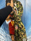 This BAPE x Adidas SB Shark Hoodie is a collaboration piece between the two iconic brands, featuring a vibrant green camo colorway. It is a size Large with a full zip closure, making it easy to put on and take off. The hoodie is designed for men and is part of the adidas x BAPE product line, offering a stylish and colorful option for football enthusiasts or fans of streetwear fashion.