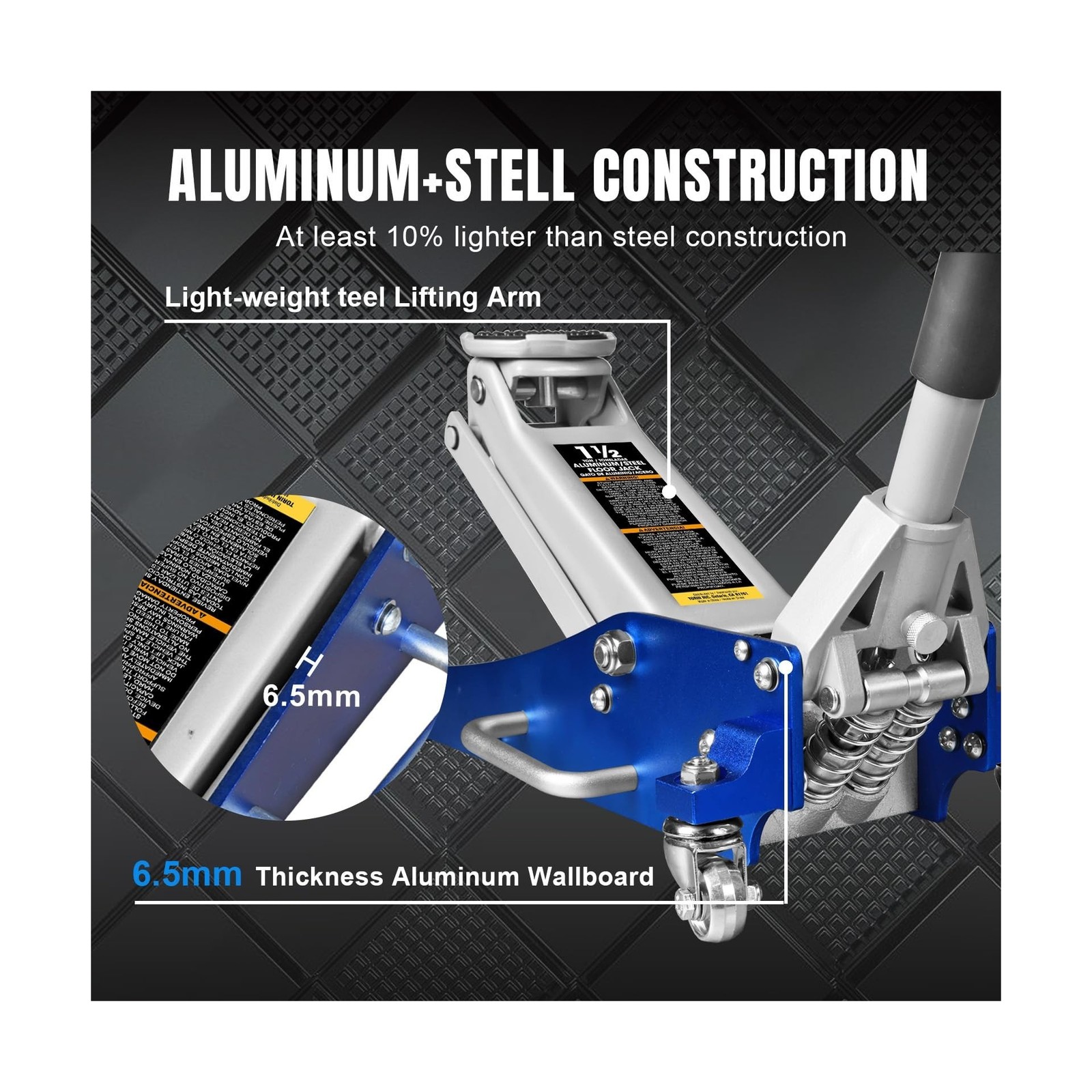BIG RED T815016L Torin Hydraulic Low Profile Aluminum and Steel Racing Floor Jack with Dual Piston Quick Lift Pump, 1.5 Ton (3,000 lb) Capacity, Blue, T815016L Description The Torin BIG RED T815016L racing floor jack can be used for general or specialty use and features a 1.5 ton (3,000 lb) capacity. With a lift range between 3.5" to 14", you can gain easy access under low-profile vehicles. It's constructed of durable, high-strength aluminum and steel, and is equipped with a handy side handle, making it easy to carry. A foam bumper on the handle helps protect your vehicle from damage. In terms of safety, this Torin service jack even comes with a built-in safety overload system which prevents use beyond load capacity.. Features: Racing floor jack can be used for general or specialty use and features a 1.5 ton (3,000 lb) capacity Constructed of durable, high-strength aluminum and steel; Equipped with a handy side handle, making it easy to carry.It has a machined, non-slip knurled handle Lifting range from 3.5" to 14" allows you can gain easy access under low-profile vehicles Foam bumper on the handle helps protect your vehicle from damage Product Details: Load Capacity: 1.5 Ton Maximum Lifting Height: 14 Inches Brand: BIG RED Color: Blue Item dimensions L x W x H: 21.81 x 9.72 x 5.91 inches Load Capacity: 1.5 Ton Maximum Lifting Height: 14 Inches Brand: BIG RED Color: Blue Item dimensions L x W x H: 21.81 x 9.72 x 5.91 inches Style: Aluminum and Steel OEM Part Number: T815016L Automotive Fit Type: Universal Fit Manufacturer: Torin UPC: 810104649223 615268615165 Global Trade Identification Number: 65, 23 Model: Floor Jack Item Weight: 33.7 pounds Product Dimensions: 21.81 x 9.72 x 5.91 inches Item model number: T815016L Exterior: Machined Manufacturer Part Number: T815016L-2 Date First Available: February 26, 2015 Delivery We Do Not Ship Outside of the Continental US. Return Policy All items qualify for returns within 30 days of receipt. Buyer is responsible for return shipping on any item that is not damaged. Feedback We take our reputation seriously, we buy and sell online, so we understand the value of trust. If you are unsatisfied with your order, please contact us and we will work with you to resolve it to your satisfaction.