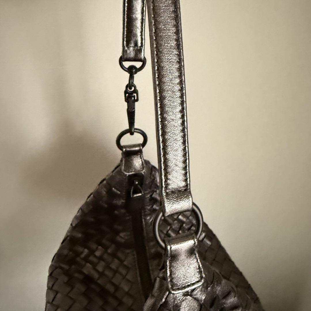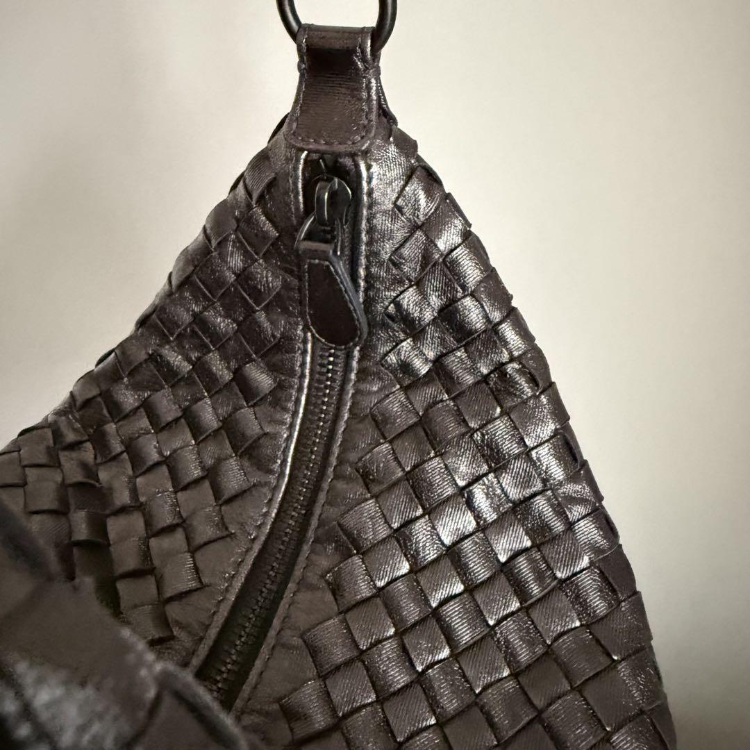 1. This Bottega Veneta Intrecciato shoulder bag is a stunning pre-loved find! The dark brown woven leather is luxurious and durable, showing minimal signs of wear. The craftsmanship is impeccable, with a secure zipper and a timeless design that pairs effortlessly with any outfit. It even comes with a dust bag, making it a fantastic deal for an authentic BV piece. Perfect for everyday elegance!