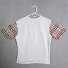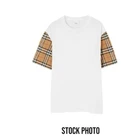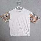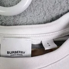Pre-owned Burberry Mens vintage short sleeve t shirt size L white and novacheck sleeves. No holes. Flaw on right chest and rear left shoulder. Still good to wear. Cleaned. As-is.