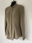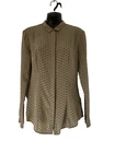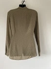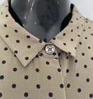 BURBERRY TAUPE / NAVY SPOT LONG SLEEVE PURE SILK COLLARED BLOUSE CONCEALED FRONT BUTTON FASTENING SIZE UK 8 THIS MEASURES ACROSS THE CHEST 18" PIT TO PIT LENGTH IS 28" DRY CLEAN