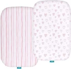 Product description Size: 33" Length X 17" Wide, with high elastic skirt, universal fit for rectangle, oval and hourglass standard bassinet mattresses Perfect fit: Compatible with MiClassic 2in1 Stationary&Rock Bassinet. Our bassinet fitted sheets are also adjustable to fit for rectangle, oval and hourglass standard bassinet mattresses, mini co-sleepers. With elastic skirt, easy on and easy off your bassinet mattress without a hassle. Ultra soft: The bassinet fitted sheet is made of 100% lightweight cotton jersey, extremely soft to the touch, breathable and stretchy, keeps your baby comfortable and cozy! Material: The bassinet sheets 2 pack in pink print are made of 100% jersey knit cotton, hypoallergenic, incredibly soft, provides with comfortable touch. Cute prints: Personalized bassinet fitted sheets for baby girl 2 in one pack with pink stripes print & pink hearts print. Mild pink and cute pattern can delight baby and mommy’s mood, quite an adorable gift for your baby girl. Easy care: Machine Washable on gentle cycle, tumble dry on low heat or line dry. Colorfast and more durable than you need. Handling & Delivery We offer Free Shipping on all orders! Your order will be shipped within 2 working days after receiving payment. In an unlikely event that your order is lost or damaged in transit, it is eligible for full refund or replacement. We ship to continental US address ONLY, we are unable to ship to PO Boxes or APO/FPO addresses. Return Policy If you are not satisfied when you receive your item, please contact us for a replacement or money back. If the item is defective, we will send you a replacement without any extra charge, or offer a full refund after we receive the defective item, but return shipping should be paid by buyer. All items qualify for returns within 30 days of receipt. Returned packages must be the original package. Biloban's Life Guarantee biloban's quality you can trust, if your items does not meet your needs for any reason, replacement or money back, no questions asked! Contact us We will respond emails within 24 hours, within 36 hours on weekend. Please like and follow Biloban baby bedding on Instagram, Facebook and Youtube.