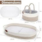 CRAFTING COMFORT FOR YOUR LITTLE ONE - Embrace the charm of our baby moses baskets woven with love from high-quality cotton rope. A timeless addition to your nursery, it echoes the of a traditional baby changing basket, offering a spacious and practical haven at 29.5" * 16.5" * 5.5". Nestle into the comforting embrace of our woven changing basket SECURITY AND SNUGGLES FIRST - Delight in the protective embrace of our 1 Security strap, ensuring tranquil and safe moments during changing. Our thoughtful baby moses changing basket radiates warmth and security for your precious one. Rest easy with our Children’s Product Certificate (CPC) certification, a testament to the safety of our diaper changing basket. GIFT FOR NEW MOM - Select a precious moses basket changing basket paired with our delicate diaper changing pad topper white. The perfect baby shower gift, it bestows practical elegance upon expectant parents, adding grace to their journey into parenthood. Light as a breeze, our baby change basket unfolds possibilities for moms on the move CHANGING PAD COMFORT - Revel in the softness of our 1.5" thick cushion, a gentle touch for your baby's comfort. Our changing pad basket for dresser is a plush sanctuary, providing a soft and supportive cocoon for every intimate diaper change. ORGANIZE WITH GENTLE ELEGANCE - Our matching diaper organizer bag, a symphony in matching cotton rope (size: 14.9" * 9.8" * 7"), becomes a gentle diaper caddy. A graceful companion to our baby changing topper, it keeps your essentials elegantly organized. Crafted with care, it forms an integral part of their earliest moments and stands as a precious addition to baby boy and baby girl newborn essentials. ALL-INCLUSIVE TENDERNESS - 's provision extends with an all-inclusive diaper changing solution. The changing pad tray for the dresser, a spacious and stylish baby changing basket for dresser top, and the matching diaper caddy create a cocoon of tenderness, ensuring every diaper-changing experience is wrapped in warmth and care. This tender changing basket for baby, becomes a cherished inclusion in the world of newborns.