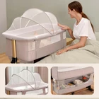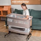 Safe and comfortable - This bedside crib meets safety regulations,mesh of two-side makes baby feel breathable and comfortable Height Position Adjustment--16.9''Min,20.8''max(from the floor to the bottom of the bassinet/mattress),suit for most adults'beds Easy to install - With clear instructions, no tools are needed during installation What you get - The crib comes with a detachable mosquito net and mattress(mattress Size:33''x19''x1.1'',the mattress come with a sheet cover that you can remove to clean it) Multifunctional:Used as a baby crib or bedside sleeper attached to adult bed,Simply roll down the co-sleep side and latch it to your bed;Simply unzip the mosquito net to allow your baby to crawl and play freely;raised unilaterally to prevent the baby from spilling milk;change to Bassinet mode,use as a baby Bassinet