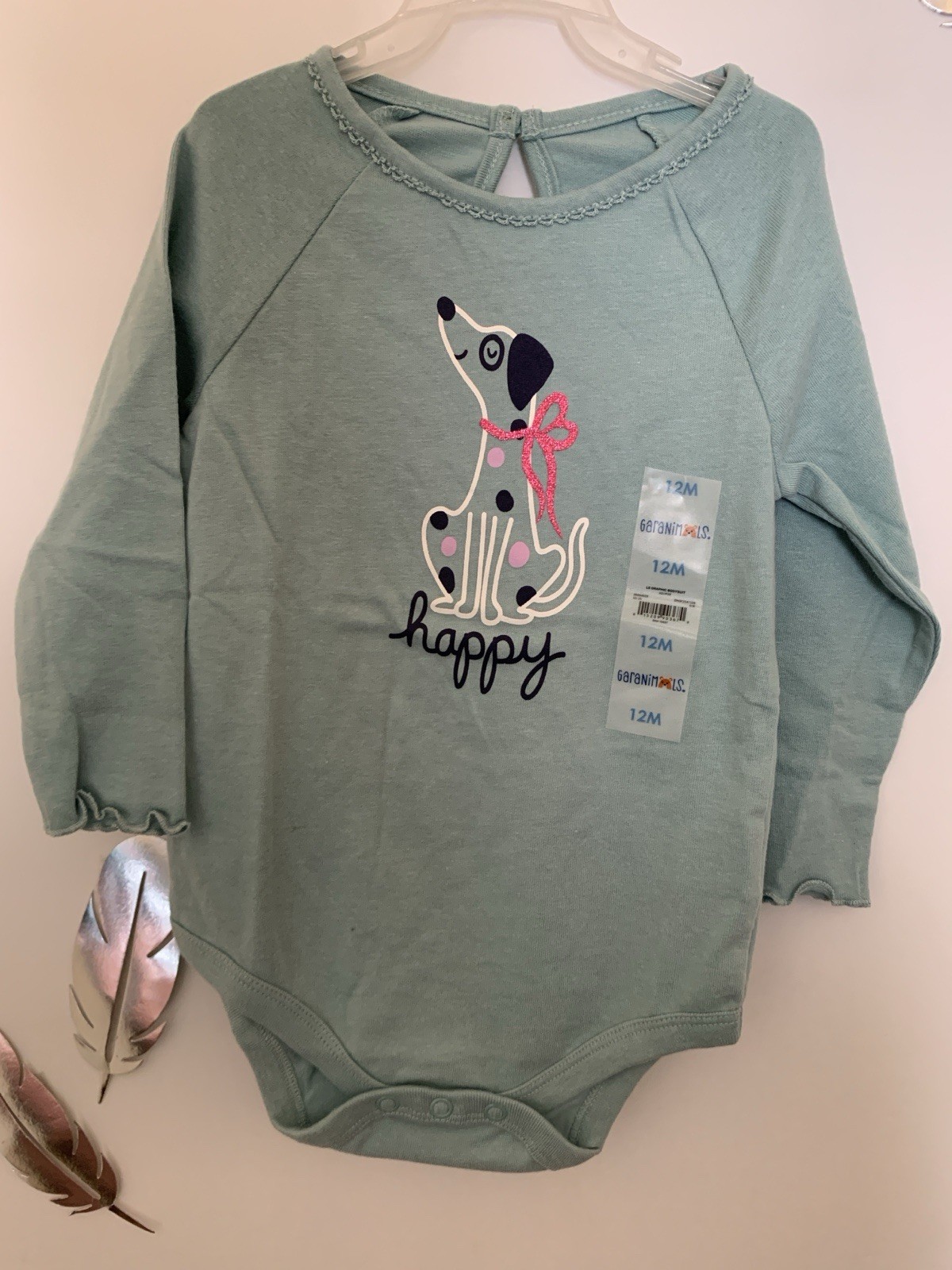 The Baby Girl 2pc Top & Pants Leggings Set in size 12 months is a lovely outfit perfect for both party and casual occasions. The solid teal and cream color with a happy puppy character adds a fun and playful touch to the set. Made from comfortable polyester blended fabric, this easy-care outfit is suitable for all seasons and features long sleeves for warmth during the winter season. The pull-on closure and machine washable design make it a convenient and practical choice for parents looking for a stylish and cozy ensemble for their little one.