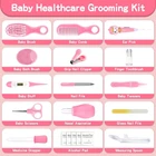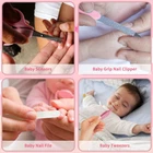 Product Description 【20 in 1 BABY CARE SET】baby grooming set includes baby comb, baby brush, baby silicone brush, baby nail clipper, nail file, baby tweezers, medicine dropper, measuring spoon, nasal aspirator, baby scissors, finger toothbrush, disposable cleaning wipes, etc. Each of them has great practical value. All products are carefully prepared for newborns to fully meet babies' daily needs! 【SPECIALLY DESIGNED FOR BABY】1. Grooming set: scissors with round blades, round teeth, comb with soft brush and silicone brush, gentle and non-irritating, suitable for baby's hair grooming and bath use; 2. Plastic tweezers, nasal aspirator and nail clipper with stopper to ensure baby's safety and comfort when using; 3. Dropper and measuring spoon with scale, convenient for you to measure the amount accurately, comfortable silicone finger toothbrush to clean baby's teeth and tongue. 【MATERIAL SAFETY】 Newborn baby essentials set made of food-grade silicone and ABS high-quality plastic, free of BPA and Ho harmful substances for babies, to provide the best safety and health protection for babies. The baby care set is safe for babies and suitable for the delicate skin of newborns. Provide your baby with intimate care and grooming for a healthier baby. 【THE PERFECT BABY CARE GIFT】The Baby Grooming Set contains individual sets for baby's body care and is very practical for use with an age range from newborn to toddler use. It is suitable for both baby girls and baby boys. This baby set is simply the ideal gift for moms-to-be or first-time parents. 【TRAVEL MUST HAVE PORTABLE】The Baby Safe Care Kit comes with a sturdy, waterproof storage bag, packs 6.3*4.3*1.57inches and weighs about 0.8lbs, making it easy to carry and store at home or for travel, and is suitable for use from newborn to toddler! High-end nursery care kit perfect as a birthday gift, baby shower gift or newborn gift!