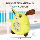 Baby Sleep Soothers - we are glad to present you a baby crib soother that is both a cute cuddle toy and light and sound machine. Baby soothers for newborns have 5 charming melodies and volume control. Lullaby Stuffed Animal - our soother for baby has 5 soothing melodies, volume adjustment and 7 light modes. Switch on the starry sky to your little one and add any sound to the magic moment. Crib Soothers for Newborns - effective for newborns, as well as elder kids, our crib lights and sounds soother will enchant your baby and make falling asleep much easier. Soother toy - take out the plastic part, insert 2 AA Batteries, close the battery compartment, switch on the tumbler and insert baby soother sound machine into the soft toy. Soother Baby Sleep - adorable puppy design that your baby will love cuddling. The lullaby machine also operates as a night light soother for babies. Sleep soother will relieve anxiety even during non-sleeping hours. Are you looking for a soothing device, musical toy or light projector for your baby? We have a baby soother sound machine that combines all these features in one cute animal soft baby plush toy! Great for cuddling Baby Soother Dog Crib Soother with Music and Lights has has 5 soothing melodies, volume adjustment and 7 light modes. Adorable dog design, that your baby will love cuddling! Starry Night Display Projector Baby lullaby machine for sleeping has a starry night projector to catch your baby's attention, entertain him during the day and relax your little one before sleep. Press the right button on the crip music and lights soother to change 7 types of color projection or switch off the light. Toddler Sleep Aid Toy 100% Cotton For our sound soother for baby we thoroughly chose the material that is safe and comfortable for babies, durable and great looking at the same time. Perfect Baby Shower Gift Our baby sound machine for sleeping is a perfect baby shower gift! Cute, multifunctional, specially designed for baby's hands, the crib soothers for sleep will make a hit on the party! Portable Baby Soother If you are active parents and need the baby shusher soother to take with you on the go, this baby soother sound machine with lights is a must. Hand/Machine Washable Music Soother Take the plastic part with batteries out of the plush baby nighttime soother and wash the toy by hand or in the washing machine. Moonlight melodies Nightlight soother - batteries 1. Remove the plastic case 2. Open the battery case with a screwdriver 3. Instal 2 AA batteries. Close the battery case with a screwdriver. Put the baby soother into the toy’s belly. Our everyday soother for baby is a super soft plush toy, perfect for cuddling, safe and cute for the baby. Effective for newborns, as well as elder kids, our crib lullaby soother will enchant your baby and make falling asleep much easier.