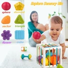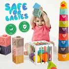 【5 in 1 Montessori Toys Set】-The baby toys set contains building blocks,Magic tissue box, stacking cups, pull string Infants toys, and cube toddler toys that will help baby develop their: Color and shape recognition and sorting skills, fine motor skills, hand-eye coordination, spatial awareness and reasoning, cognitive flexibility, language skills, creativity, problem solving, logical thinking, Great baby montessori toys 6-12 12-18 months. 【SAFETY FIRST】 - Our Montessori toys for babies 6-12 months are made with premium quality, 100% safe and high quality materials, BPA free, Phthalate Free. All of baby items have passed the most stringent CPC/ASTM, Educational toys for 1-3 year old boy and girl. 【Baby Tissue Box】-Babies love playing with tissue boxes and paper, so we’ve created a safe and fun replacement.Our early development toys (3 Pack crinkle paper + 8 Juggling Rainbow Dance Scarves) are ready for your baby, This sensory tissue box will entertain babies for hours with its vibrant colors, crinkly sounds, and pull-along fun. which will promote their skills of fine motor, distinguish colors, stimulate the development of their hearing and vision 【Pull String Infant Toys】-This multi-sensory silicones activity toy has a unique design, montessori silicone toy has 6 brightly colored ropes, which can develop their motor skills and sensory perception by pulling up and down silicone ropes, pressing and pushing buttons. This sensory silicone toy will keep the baby occupied and entertained for hours while they play and explore the cause and effect. a great Baby teeting toys, that can also be used as a stroller pendant. 【Explore Sensory Bin+Stacking Sensory Toys】 - Our stacking building blocks baby toys 3-6 months are good for learning colors, shapes, textures, counting, visual development etc. Also can be used as bath toys and matching game! The educational shape sorting toys frame made of high quality ABS plastic,has rounded corners are soft, baby tries to push the shapes through the elastic bands and perform the sensory shapes. As a baby toy to explore and try, it awakens the curiosity of the children.