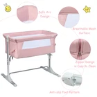 Color: Pink Material: Iron + Aluminum + Linen Fabric + Sponge +Oxford Cloth +MDF Board Overall Size: 38" X 19.5"-27.5" X 26.5"-34" (L X W X H) Carrying Bag Size: 37.5'' x 6'' x 19.5'' (L x W x H) Adjustable Height: 26.5", 29", 31.5", 34" Net Weight: 17lbs Applicable Age: 0-6 Months Load Bearing: 20lbs Package Includes: 1X Bed Side Crib 1X Carry Bag 2X Fixed Rope 1X User's Manual Description: Are you tired of another sleepless night with your baby? Our bedside crib has 4 adjustable heights and tilting features to suit your different needs. Moreover, the detachable sidebar can make parents and children interact even better. It can be easily attached to the parent's bed, allowing parents to stay close to their little ones. It is sturdy and durable enough to ensure your baby's safety and security. The detachable mattress is made of high-quality fabric and filled with high-density sponge, bringing a comfortable and safe sleeping environment for your kids. It comes with a carrying bag allowing you to take it with you anywhere you go. This crib can solve all the troubles and give you and your baby a comfortable sleeping experience. Choose our baby and choose a good night's sleep! Features: A detachable sidebar and two fixed ropes allow it to be easily attached to the parents' bed. Bedside crib is good for taking care of kids at night and improving their sleep quality. Retractable feet make it easy to place beside the bed and the sofa. 4 adjustable heights to meet the different needs of parents. The two-side mesh allows you to keep an eye on your baby while have good air circulation. The comfortable and detachable mattress will protect the baby's spine. Detachable and washable linen cloth for easy maintenance Stable bottom support makes the whole structure more durable and sturdier. It is ASTM certified for safe use. Lightweight design and the carry bag allow you to relocate it with ease. Specifications: Color: Pink Material: Iron + Aluminum + Linen Fabric + Sponge +Oxford Cloth +MDF Board Overall Size: 38" X 19.5"-27.5" X 26.5"-34" (L X W X H) Carrying Bag Size: 37.5'' x 6'' x 19.5'' (L x W x H) Adjustable Height: 26.5", 29", 31.5", 34" Net Weight: 17lbs Applicable Age: 0-6 Months Load Bearing: 20lbs Package Includes: 1X Bed Side Crib 1X Carry Bag 2X Fixed Rope 1X User's Manual