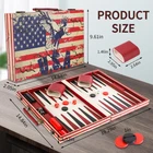 American flag design. Make America Great Again. Qulity leather covered. Classic backgammon game ideal family game night playing. Perfect Size : OPEN 15*19*1INCHI CLOSE 15*9*2INCH Package Includ: Backgammon Board, 2 (pairs) x Playing Chips (32 Backgammon Pieces in total), 3 (pairs) x Dice (4 in total), 1x Double Coub, 2 x Dice Shackers and detailed instructions .