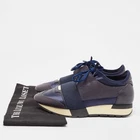 Our eBay Store About Us Contact Us Add to Favorite Sellers Balenciaga Navy Blue Fabric and Leather Race Runner Lace Up Sneakers Size 37 Elevate your footwear game with these Balenciaga sneakers. Combining high-end aesthetics and unmatched comfort, these sneakers are a symbol of modern luxury and impeccable taste. Product Details Brand Balenciaga Color Navy Blue Includes The Luxury Closet Packaging Outsole Length 27 cm Outsole Width 8 cm Size 37 Certified by The Luxury Closet This item has gone through a detailed authentication process overseen by our experts. We offer a lifetime guarantee of authenticity on all our items. How We Check The in-house team of experts at The Luxury Closet is highly trained to verify the authenticity and the condition of the luxury products. They ensure that only 100% authentic items are put on sale.The evaluation process is unique with its own mix of assessment criteria and differs according to the category. Each item is evaluated based on the following combination of hallmarks, hardware, stitching, symmetry, material, craftsmanship, stamping, codes, hologram stickers, and packaging. Our authenticators also check if the items have been modified or amended (e.g., aftermarket diamonds, replaced batteries, repaired bags, etc.) International Buyers Import duties, taxes and charges are not included in the item price. These charges are the buyers responsibility. Please check with your country’s customs office to determine what these additional cost will be prior to buying.