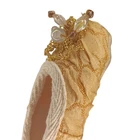 Ballet Slippers Toe Shoes Ornament Or Decor Gold Fabric Embellished & Ribbon Approximately 4.5" x 1" Weighs approximately 2 oz Very good condition