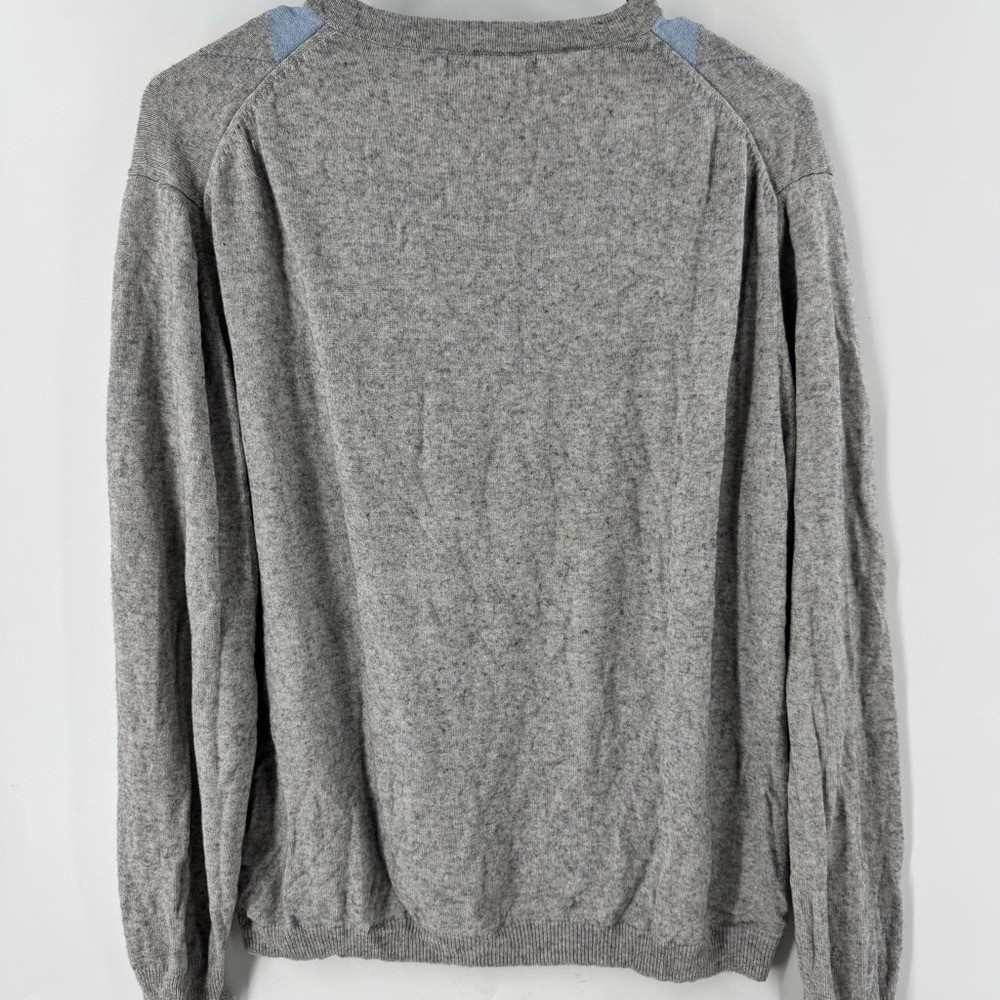 Elegant V-neck sweater with classic argyle pattern. Soft gray and blue tones. Ideal for layering. Great Condition 1128
