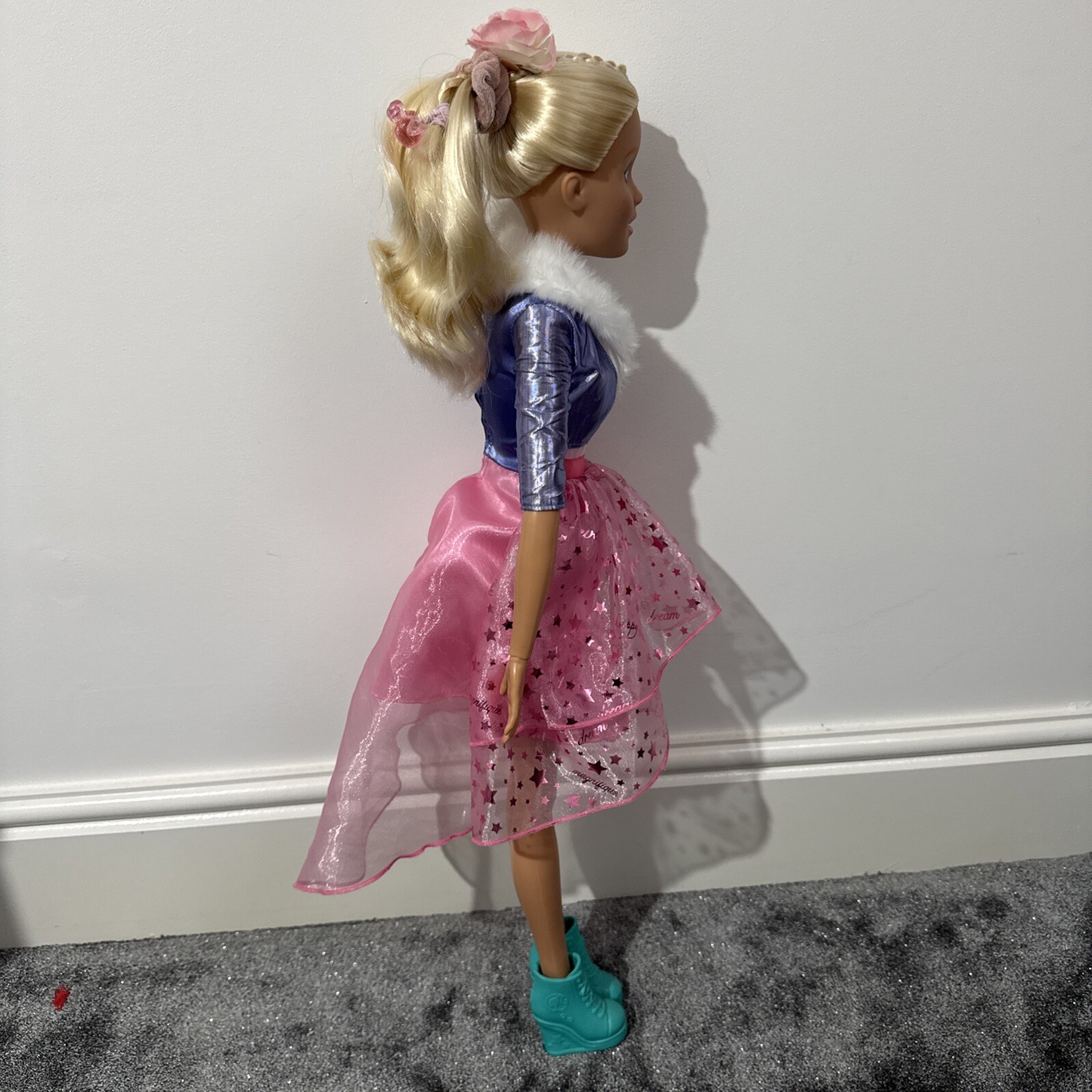 Embrace the charm of the Barbie 28" Princess Practically new! Been sitting in my daughter’s room for a year Adventure Doll, a delightful addition to any collector's or child's playtime ensemble. Crafted with care by Mattel, this large-sized play doll is designed to bring the excitement of royal adventures right into your home. The doll features luscious blonde hair, a signature Barbie trait, and is dressed to impress with intricate detailing that reflects her majestic persona. This Barbie doll is not just a toy but a companion that sparks the imagination with endless storytelling possibilities. Made from durable plastic, the doll is built to withstand hours of play or display. Whether it's for a devoted fan of the franchise or a young dreamer starting their collection, this 28" Princess Adventure Doll is sure to be a treasured item.