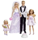 Brand New Barbie Dolls Wedding Gift Set 4 Pack Give Barbie doll the wedding of her dreams and send her off into happily ever after with this Barbie wedding gift set that features a full bridal party! Four beautiful dolls include a bride, groom and two bridesmaids, plus wedding-themed pieces for complete wedding day play. Barbie doll is ready to walk down the aisle wearing a glamorous bridal gown - a strapless bodice and lavender floral-print skirt are right on trend. A removable headband with veil, sculpted necklace and matching shoes complete the exquisite ensemble. Ken doll is ready to wait by the altar wearing a classic black and white tuxedo with a black bow tie and matching shoes. Bridesmaids Stacie and Chelsea dolls will help their sister celebrate the special day in lovely lavender looks that complete the wedding theme. Walk down the aisle and into imagination carrying flower bouquets, and enjoy traditional fun with the included wedding cake. Say "I do" to a complete gift set for wedding play. Includes Barbie bride doll, Ken groom doll, Stacie bridesmaid doll and Chelsea bridesmaid doll wearing fashions and accessories, plus three bouquets and one wedding cake. Dolls cannot stand alone. Colours and decorations may vary. Recreate memorable wedding moments with a complete wedding gift Barbie makes a magnificent modern bride Barbie doll is ready to marry Ken in her bridal gown Ken doll is ready to wait by the altar and is wearing a classic black and white tuxedo Bridesmaids Stacie and Chelsea dolls are totally adorable with lavender dresses, matching shoes and bouquets of their own A wedding cake expands the realistic play and storytelling possibilities Contents: 1 x Bride, 1 x Groom and 2 x Bridesmaids dolls, 3 x Bouquets for the girls and 1 x Wedding cake Delivery Tracked - 2-3 day delivery to all UK mainland addresses All addresses off the mainland UK can take slightly longer to arrive, which can take between 3-5 days delivery. International postage is available at checkout. Returns We except returns as long as your item is still in the original packaging and you can return the item to us within 30 days from the date of delivery. Any issues that you may have with your item, please contact us directly.