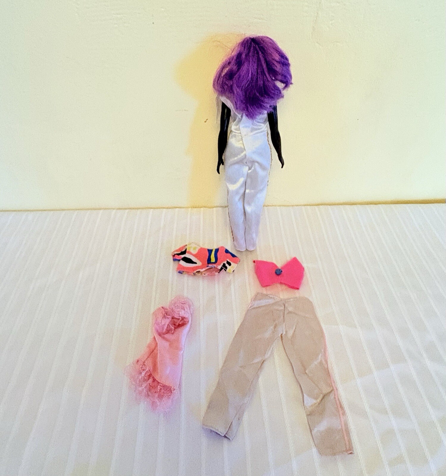 Product Line: Fashionistas Doll Gender: Girl Doll Brand: Mattel Doll Size: 11 in Type: Fashion Doll Country/Region of Manufacture: Indonesia Character: Barbie Signed: No Handmade: No Doll Hair Color: Purple Doll Hair Type: Straight Personalize: No Set Includes: Doll Time Period Manufactured: 2010-2019 Original/Licensed Reproduction: Original Material: Cloth, Plastic Antique: No
