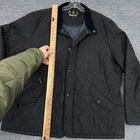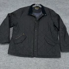 Barbour Chelsea Sportsquilt Jacket Men 2XL Black Quilted Insulated Snap Zip READ In pre-owned condition but there are a couple of minor flaws as shown. There is a small group of holes near the bottom button and some wear to the zipper trim. Please see photos for measurements.
