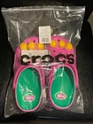 These are the Barney Crocs in a Kids’ Size J6. They’re brand new and have not been taken out of its bag.