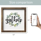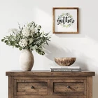 Barnyard Designs Gather Sign Rustic Primitive Country Farmhouse Home Decor Wall Sign 13" x 13” Product Details Color: Gather Brand: Barnyard Designs MPN: FM18J0129-A UPC: 750325932578 EAN: 0750325932578 Product Dimensions: 12.99 x 12.99 x 0.04 inches Item Weight: 12 ounces Manufacturer: Barnyard Designs Country of Origin: China Item model number: FM18J0129-A Is Discontinued By Manufacturer: No Finish types: Unfinished Number of pieces: 1 Batteries required: No Gather sign decor - Welcome your guest in a warm and loving way during the holiday season with this rustic home decor sign. It will add a bohemian and festive touch. Rustic primitive country accent - This beautiful wall art with an unfinished wood frame will bring an old vintage, primitive theme to your decor. Ready to hang - This wall sign comes ready with pre-installed mounting hooks. Leave it displayed as decor on a shelf, mantle or counter top leaning against a wall. Makes a great gift - Makes a great gift to friends and family. Home decor that will look great as festive decor for thanksgiving, Christmas and holiday parties. Dimensions - 13" x 0.75" x 13".