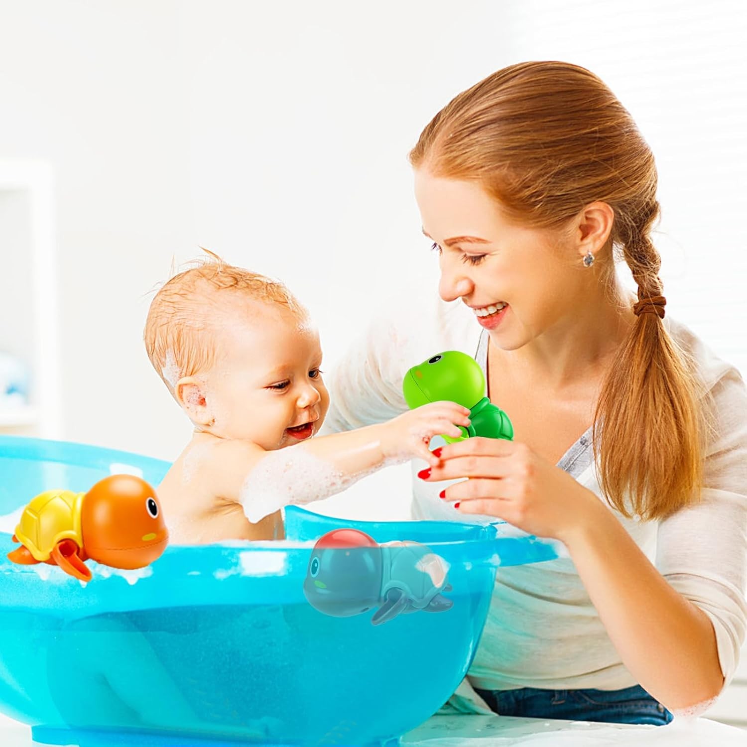 Bath Toys, 6 Pack Swimming Turtle Baby Bath Toys for Toddler 1-3, Water Pool Floating Wind Up Toys for 1 Year Old Boy Girl Gifts, Infant Toddlers Kids Bathtub Toys Description Features: Wind Up Turtle Bath Toys: The Bath Toys Set includes 6 bright colored turtles. Bath time can be a fun and enjoyable experience for your little ones with our swimming turtle bath toys! There are perfect bath toys for toddler 1-3 and are sure to keep them entertained while they splash around in the tub. TIPS: Turtle bath toys will hold water, please drain the water through the turtle's mouth after use to keep it dry Educational and Interactive: This Floating Wind Up Bath Toys are not only fun but also educational. They help kids understand the knowledge of physical buoyancy and develop their hand-eye coordination. Plus, the rotating device and clockwork make them interactive and engaging for your children Safe Bath Toys: Our Baby Bath Toys are made from high-quality ABS material and designed to be safe and durable for your little ones. Smooth edges for baby to touch, play and hug. Non-electric bath toys, need to wind-up repeatedly so as to provide power, recommended to turn the clockwork 3 times, turtle will swim about 8-10 seconds Lovely Turtle Style: This is a very suitable for baby bath toy, unique turtle shape is loved by everyone, swimming turtle to attract baby's attention, bright colors to catch baby's eyes. Swimming turtle bath toys make your baby interested in swimming Perfect Gift for Toddlers: Bath toys for toddlers 1-3 make the perfect gift for any occasion, whether it's Birthday, Holiday, or Christmas. Give your baby a lovely swimming tortoise team and watch them have fun in the bathtub Product Details: Product Dimensions: 6.37 x 4.4 x 5.1 inches Item Weight: 12 ounces Manufacturer recommended age: 12 months - 12 years Manufacturer: TOHIBEE Handling We will ship all orders within 3 business day of payment. Delivery We Do Not Ship Outside of the Continental US. Return Policy All items qualify for returns within 30 days of receipt. Buyer is responsible for return shipping on any item that is not damaged. Feedback We take our reputation seriously, we buy and sell online, so we understand the value of trust. If you are unsatisfied with your order, please contact us and we will work with you to resolve it to your satisfaction.