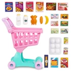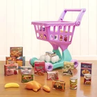 The Play Circle Shopping Day Grocery Cart is a 30-piece plastic shopping cart for kids that will have them running down the aisles of their imagination! Feed your child’s passion for playtime with the unlimited discovery possibilities that this adorable mini shopping cart and pretend food set can offer. Inside this children’s shopping cart you’ll find a variety of lifelike boxed food items, realistic miniature canned foods, and plastic “fresh” foods that will provide hours of fun. A fantastic gift that provides different role-play and learning opportunities at a variety of ages and developmental stages, this play set is great when combined with other imaginary-play items like the Princess Birthday Party, the Cha-Ching Cash Register, and the Dishes Wishes dish and utensil set. Help your child stock their cupboards with memories and creativity! Shopping Cart And Play Food Set Sized Perfectly For Small Hands And Bigger Imaginations Adjustable Handle Is Easy To Grab And Great For Various Heights, And The Durable Plastic Wheels (That Won’T Leave Scratches) Are Easy To Push On Carpets Or Hard Floors Realistic Details Like “Nutrition Information, ” Lids That Open, And Detailed Fruits And Vegetables (In Funny Sizes For More Giggles) Includes: (1) Pink Shopping Cart, (15) Food Boxes, (1) Mineral Water Bottle, (1) Milk Bottle, (1) Pear Juice Can, (1) Chicken Noodle Soup Can, (1) Loaf Of Bread, (1) Chicken, (6) Eggs, (1) Plastic Egg Carton, And (1) Banana