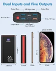 【A must have on-the-go】:USB C Fast Charging Portable charger Power bank with 26800mAh Capacity is perfect for GPS when using motorcycle,Business trip,Camping,Hiking,Vacation,Gift for the one you care. Keep your phone always on,no need to worry about losing contact with anyone when your phone is runing out of battery.With the USB Type-C output port,the item will also work with most latest devices. 【PD 20W Portable Charger with Dual inputs and 5 outputs】:This item is with Power Delivery function ( Type-C port ) which supports high speed charging,there are total 5 USB Ports output (inlcuding USB C output) which can be shared with friends or charge 5 devices at the same time.There are 2 input options,USB Micro and USB C input options.The recharging cord comes with the item is USB type C cord,faster recharging when needed. 【Battery Pack with LCD Digital Display】:The LCD screen is Hidden-Design,you will NOT be able to see the display unless the LCD screen is ON.The big front LCD Display will be more convenient to know the exactly percentage of remaining juice of the battery phone charger than a blinking dot. So that you will know exactly when to recharge it.To turn on the LCD Screen, just need to connect your devices to the item or click the power button on the side of the item. 【Heavy-Duty Battery pack with Li-Polymer cells】:The weight of this power pack is around 13.4ounces. It's a little bit heavy only because the weight match the huge capacity 26800mAh,it lasts long and holds charge well. The Lithium Polymer Cell is safer than other battery cells,long lasting and sturdy. It's a heavy and powerful charging bank,it worth the weight indeed.Release yourself,no more facing to the wall or being tied by the wall socket when chilling at home. 【What you can get】:Portable Charger x 1,USB A to C recharging cord x 1,Protetion Mesh Bag x 1,Manual x 1 ) - Please kindly understand that it does NOT come with any cord for phone or wall charger.